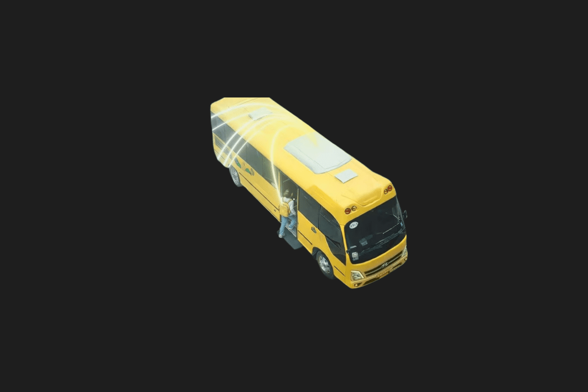 In the test, students had UWB tags attached to their backpacks (shaped like toys—a nice touch). The bus driver had a screen showing the precise location of every child, whether they were seated inside or running near the wheels outside. Even if a child was in a complete blind spot, the system alerted the driver not to move.