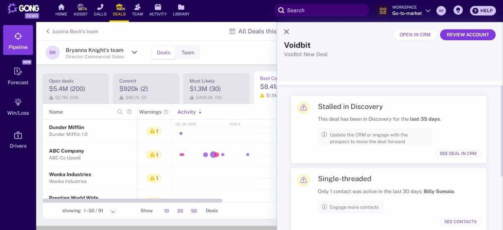 - Revenue Intelligence: Analyzes conversation content to forecast deals, assess risks, and track competitive mentions.
